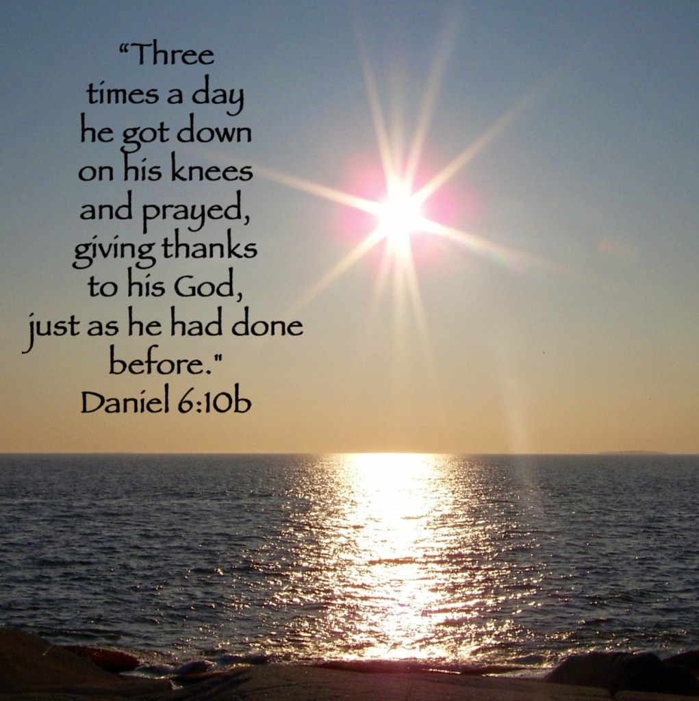 Daniel did this. Other people do this. What would happen in our lives if we dedicated ourselves to praying 3 times a day, each and every day? It does not take a long time; our prayers can be as long or as short as we feel necessary, but I do know this, if we start and make a habit of this, the prayers will get longer, more meaningful, and more honest. After all, prayers are our words to our Father! And the more you talk with someone, (and that is what prayer is), the more you want to talk to them.