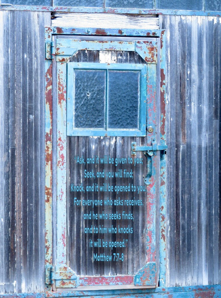 We go through many doors each day. Bedroom doors, front doors, store doors, the door to our car or the bus door. How many times do we need to knock to be let in? How many time do people knock on our door to visit or try to sell us something? I know, there are not many door to door salespeople any more, now they “knock” old our phones. But you get the drift.