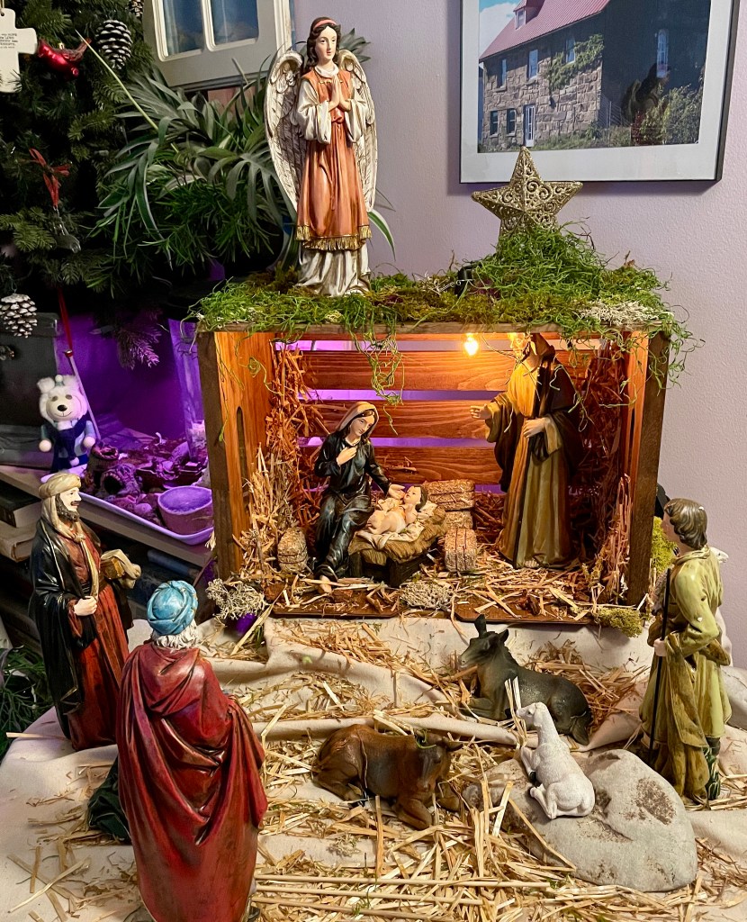 I do love this time of the year, just not all the advertising. We don’t have a tree any more, so no time needed to put up then take down all the ornaments, but we do have a manger scene that we built. It looks so beautiful, and it was so much fun to create. Something we did together!